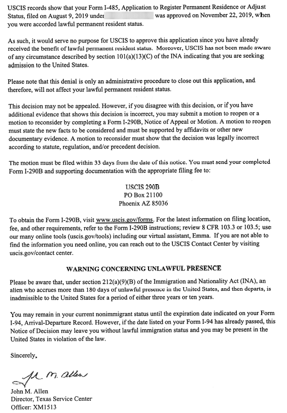 내가 기다렸던 소식은 이게 아닌데....2019년 8월에 신청한 영주권 서류가 11월에 승인이 되었으므로 해당 비자 변경은 거절한다는 내용입니다. 2019년의 저는 미국 땅을 밟아본적도 없는 한국 대학생이었는데요...